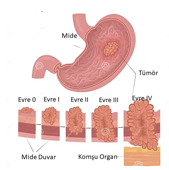 Evreleme tümör invazyon derinliği (tümörün mide duvarındaki derinliği), lenf düğümü metastazı ve uzak metastaz varlığı değerlendirilerek uluslararası evreleme sistemine (TNM sistemi) göre yapılır. Her hasta için tedavi tümörün evresine göre planlanır.