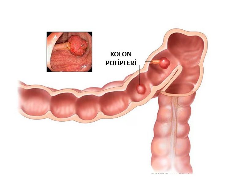 Polipler, içi boş organların yüzeyini örten katmanda oluşan kabartı şeklinde anormal doku büyümeleridir. Çoğu kolorektal kanser başlangıçta poliptir, ancak tüm poliplerin sadece %5-10’u kansere döner. Polip büyüdükçe kanser riski artar ve kolon poliplerini kansere dönüşmeden çıkartma imkanı sağladığı için kolonoskopi (alt gastrointestinal sistem endoskopisi), kanseri gerçekten önleyebilecek testlerden biridir. Kolonoskopi ile hem polip tanısı konur, hem de bu polip çıkartılarak olası bir kanser gelişimi engellenir.